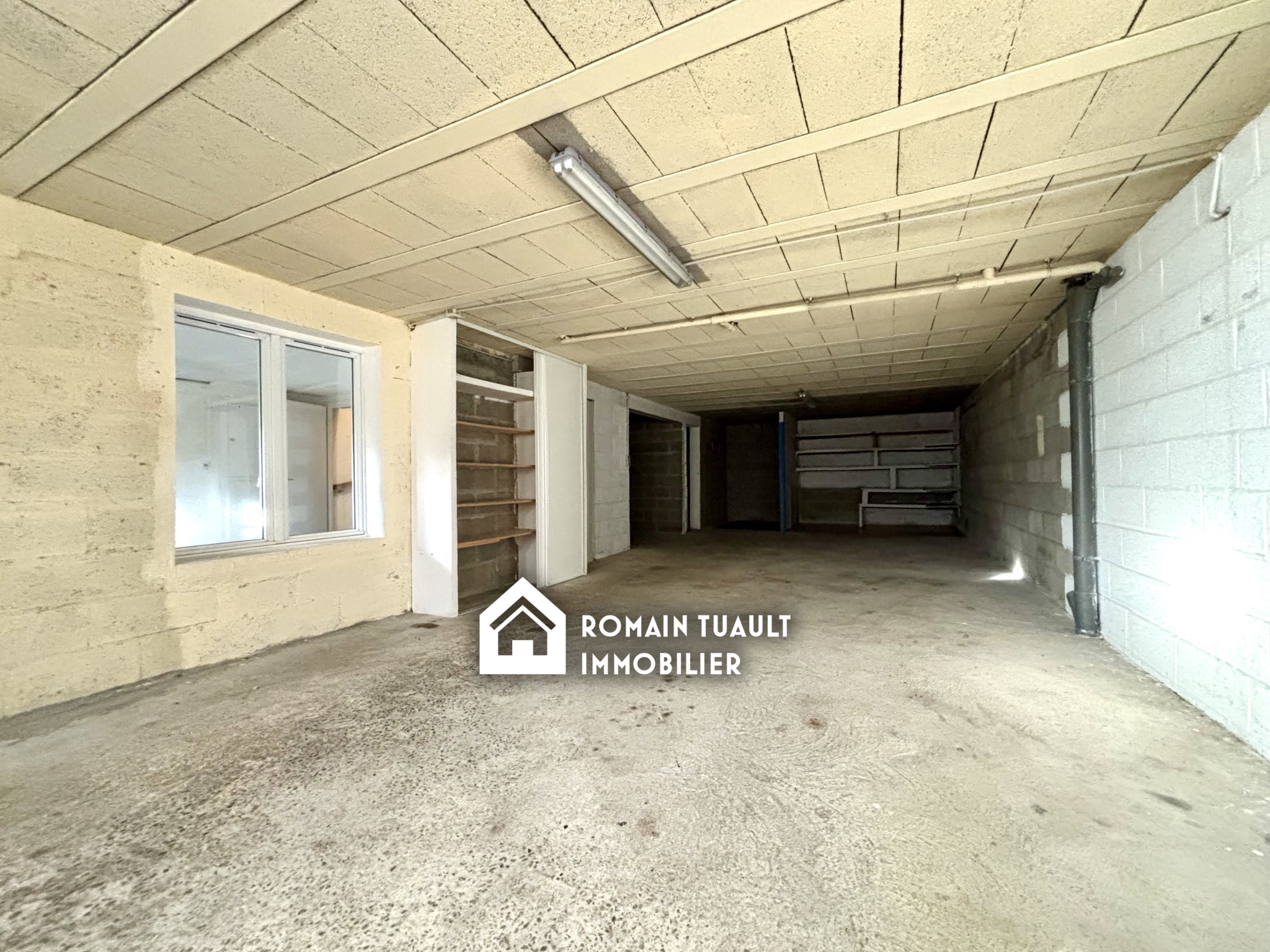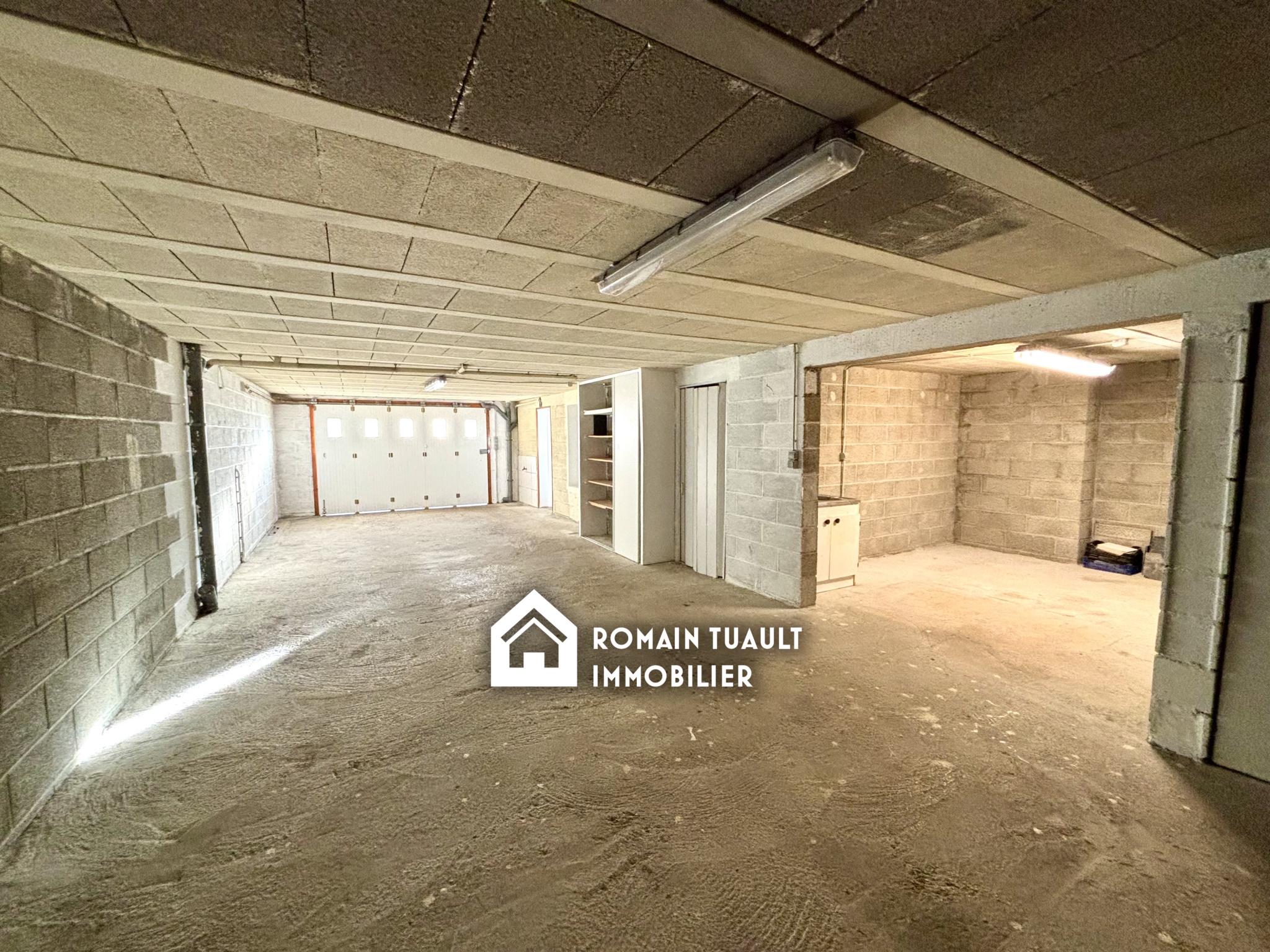 Sous-sol intégrale comprenant un garage, un espace de stockage et une buanderie isolée.